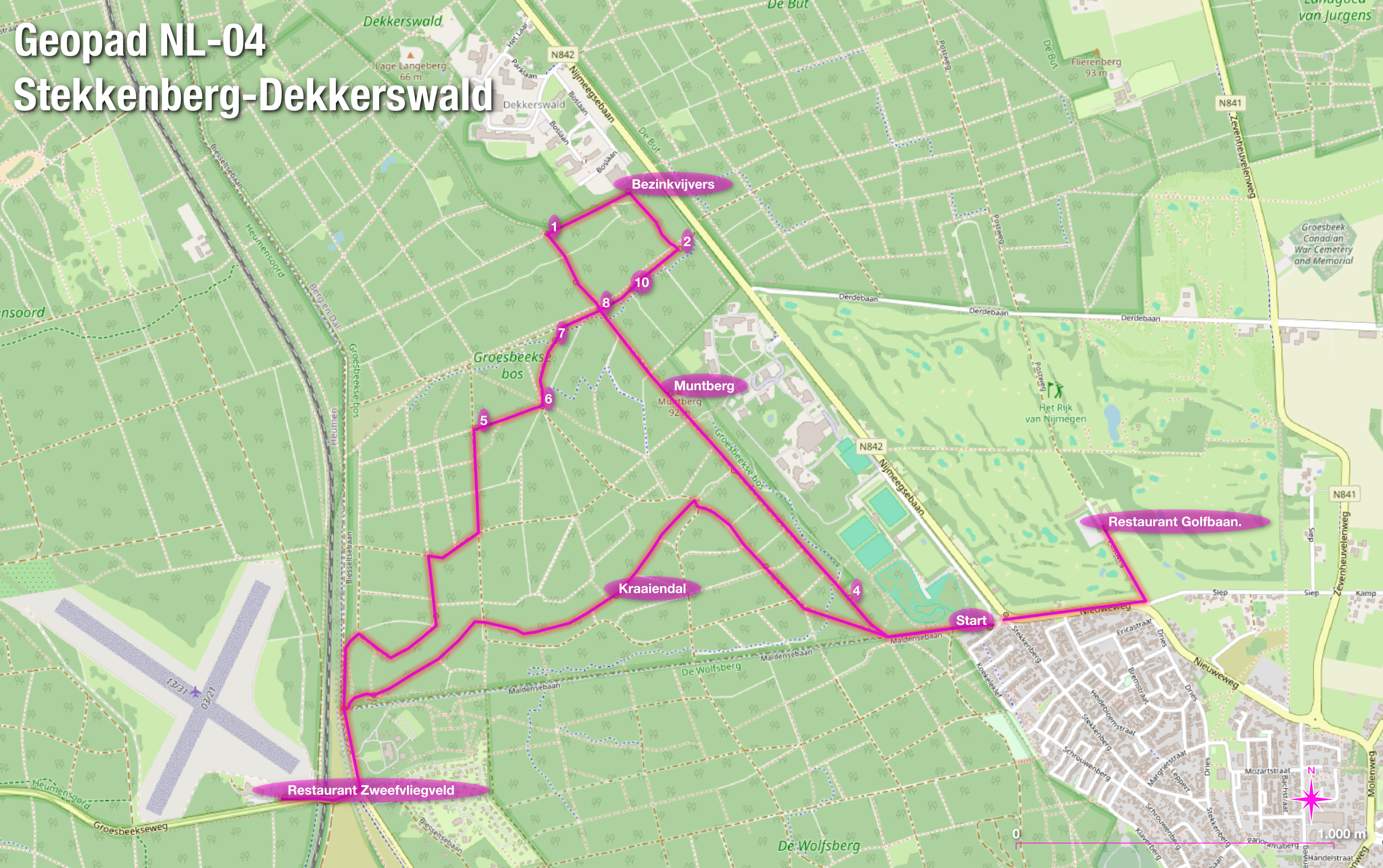 Grotendeels boswandeling vanaf de bovenrand van het stuwwalplateau aan de noordwestkant van Groesbeek tot het begin van de spoelzandvlakte bij het zweefvliegveld bij Malden. Wandeling door één van de fraaiste droogdalen van het stuwwalgebied, het Kraaiendal, dat praktisch in zijn geheel doorlopen wordt.